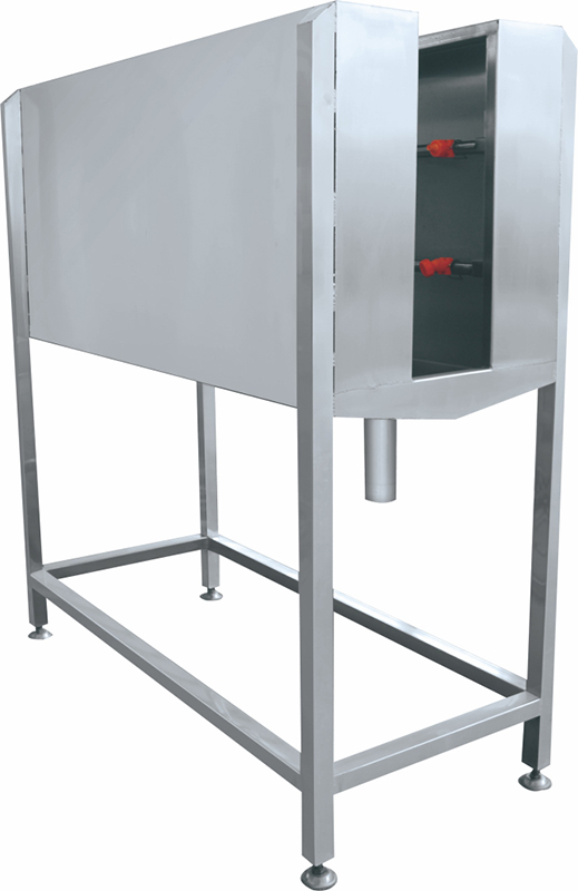 产品概述该机接入肉鸡掏脏流水线中,对完成掏脏后的肉鸡胴体进行在线喷淋清洗。将胴体胸腔内的血迹、污物等冲洗干净。有效降低排酸脱毒过程中,预冷机池体内冷却水的污浊程度。主要技术参数外形尺寸:1600*700*1850