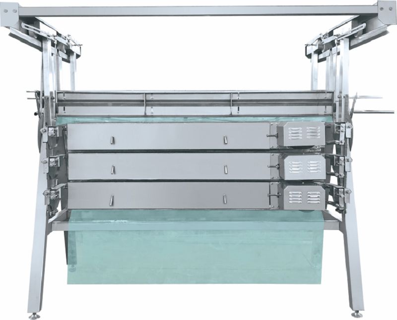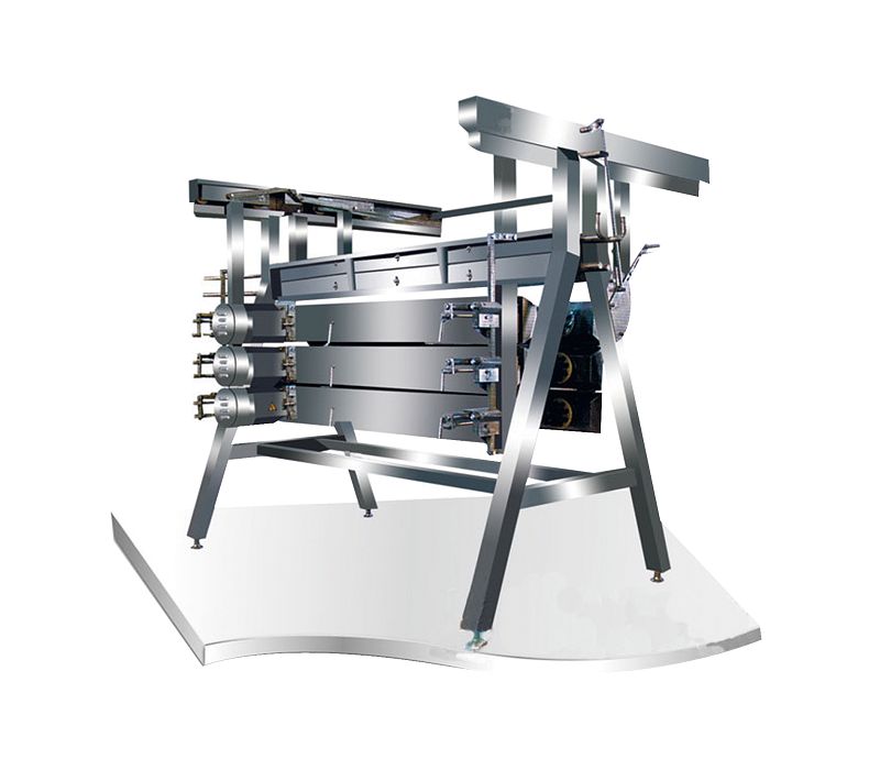 结构特征:采用机械传动方式,依靠禽类肢体与橡胶棒之间的相对摩擦运动,脱去禽类羽毛,采用A字型支架,脱毛箱可开闭,维修方便,箱体调节机构主要有高度调节机构,宽度调节机构和角度调节机构三部分组成,将箱体调节到最适宜的脱毛状态。